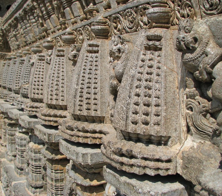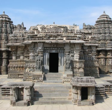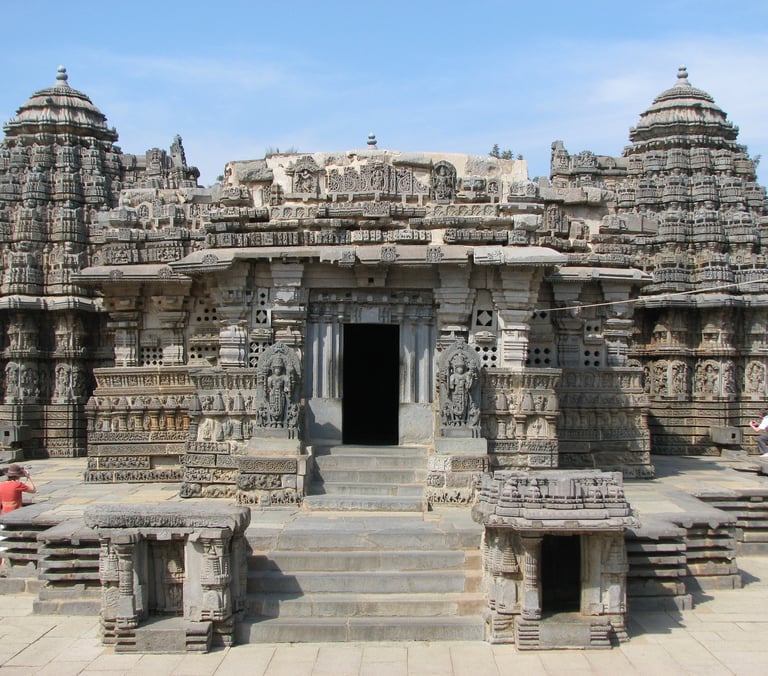 Somnathpur Temple, India, featuring intricately carved soapstone construction, with detailed geometric and nature inspired designs