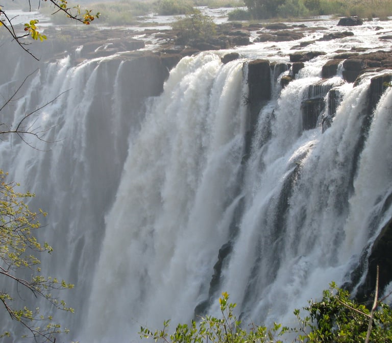 Victoria falls, is a waterfall on the Zambezi River, located on the border between Zambia and Zimbabwe Border